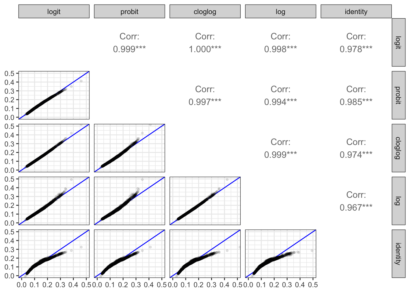 We will now turn to measuring the predictive performance of the models using the Pearson and deviance loss functions and the AUC concordance parameter. First we implement a function for computing and AUC estimate using the wilcox.test()
