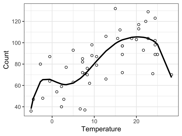 Figure 9.1 shows a scatter plot of the data. We will build a sequence of predictive models of Count